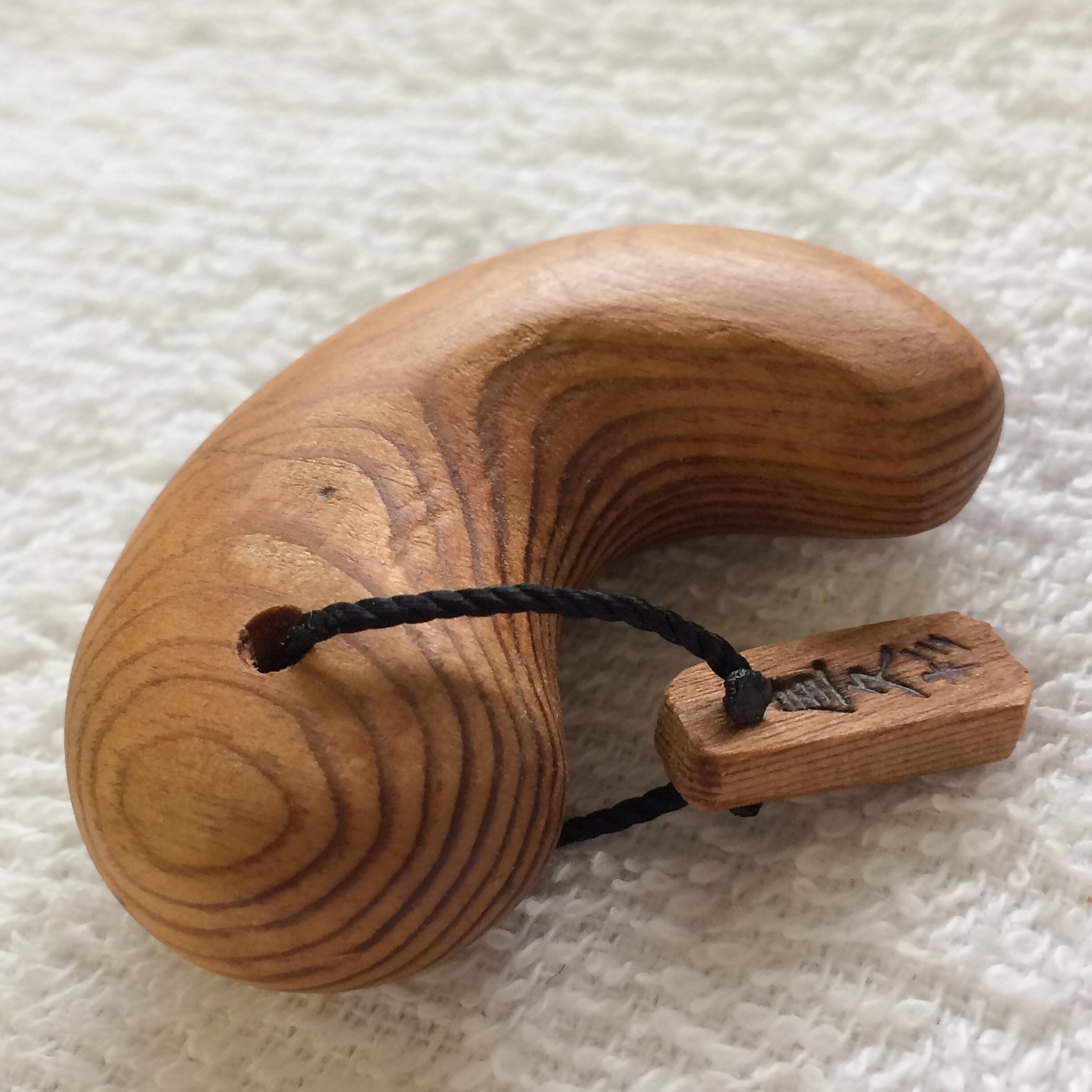 ・屋久杉の濃い油木部分で製作した 良質な勾玉です。